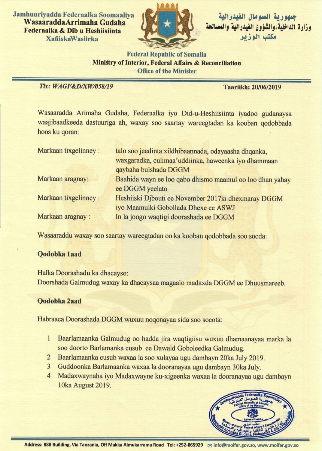 Heshiiska oo dhacay Bishii June ee Sanadkaan ayaa waxaa sidoo kale ku jiro in Ahlu Sunna iyo Wasaaradda Arrimaha Gudaha ay si wadajir ah usoo magacaabaan Guddiga Farsamada ee Doorashada Galmudug.