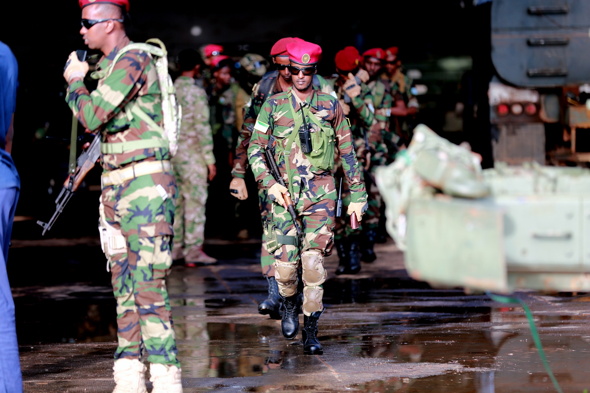 Ciidamadaan oo gaaraya 30-askari aadna u qalabaysan ayaa ka degay garoonka diyaaradaha ee magaalada Dhuusamareeb waxaana soo dhaweyn u sameeyay saraakiil ka tirsan ciidamada dowladda iyo kuwa Galmudug iyada oo la sheegay in lagu wareejiyay gaadiid ciidan oo gaar ah.
