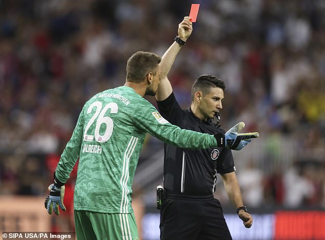 Daqiiqadii 81-aad ayaa kaadhka cas loo taagay xiddiga u ciyaara kooxda Bayern Munich ee Sven Ulreich isaga oo laga saaray ciyaarta.