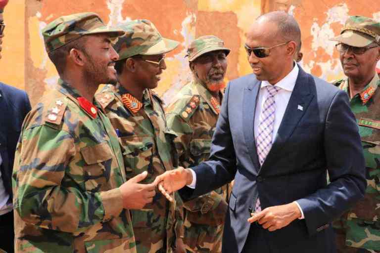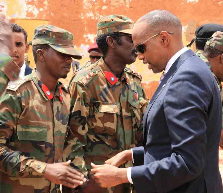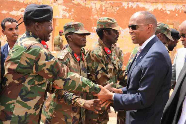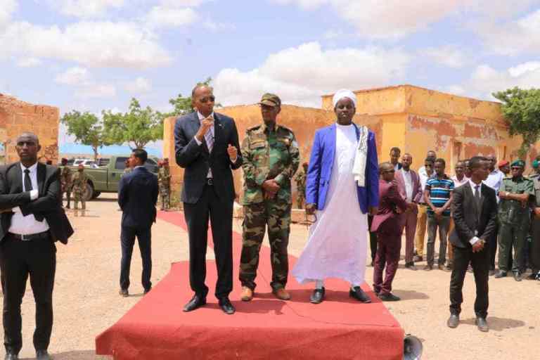 Ra’iisul Wasaaraha oo ay booqashadiisa ku wehliyeen madaxa fulinta Galmudug iyo taliyaasha ciidanka qalabka sida ayaa khudbad u jeediyay ciidanka waxa uuna ku boorriyay in ay maraan hab-raaca oo ay is isdiiwaan geliyaan si ay u helaan xuquudooda iyo agabka ciidan ee ay u baahanyihiin.