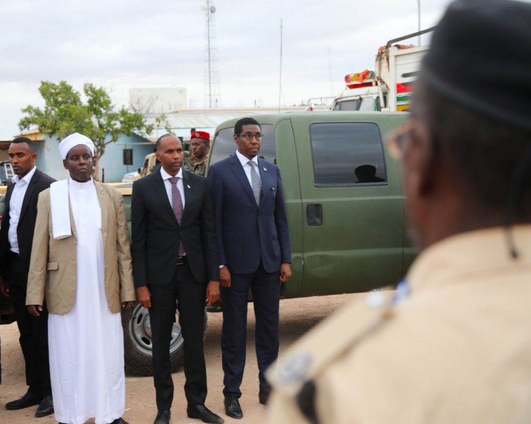 Ra’iisul Wasaaraha xukuumadda federaalka Soomaaliya, mudane Xasan Cali Khayre oo ay wehliyaan wasiirka amniga gudaha Maxamed Abuukar Islow, wasiiru dowlayaasha arrimaha gudaha, difaaca iyo howlaha guud iyo madaxa fulinta Galmudug ayaa ciidamada kormeeray, si uu ugu dhiirri geliyo gudashada mas’uuliyadda wayn ee ay qaadeen, ugana mahad celiyo hannaankii wanaagsanaa ee ay uga soo shaqeeyeen amniga