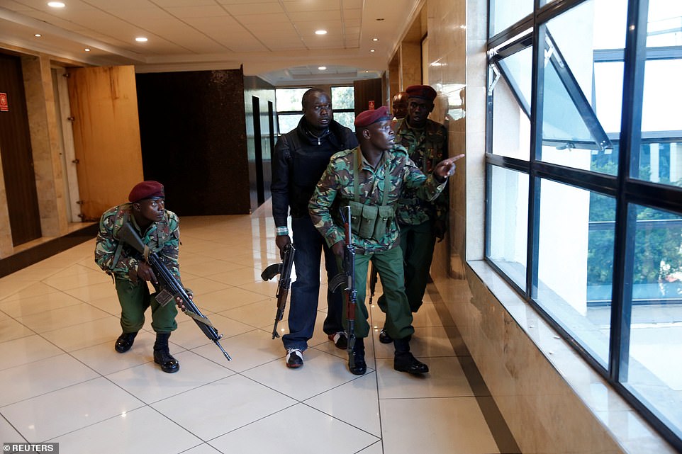 Ciidamada Kenya gaar ahaan kuwa sida gaarka ah u tababaran ayaa isku dayaya in ay soo afjaraan weerarka ka socda hotelka kuyaala Nairobi, waxa ayna ciidamada adeegsanayaan rasaas culus ay ku ridayaan dableyda hubeesan.