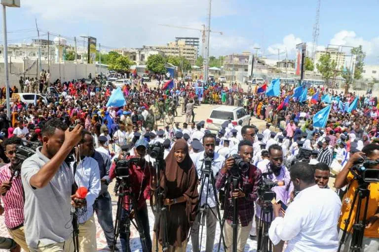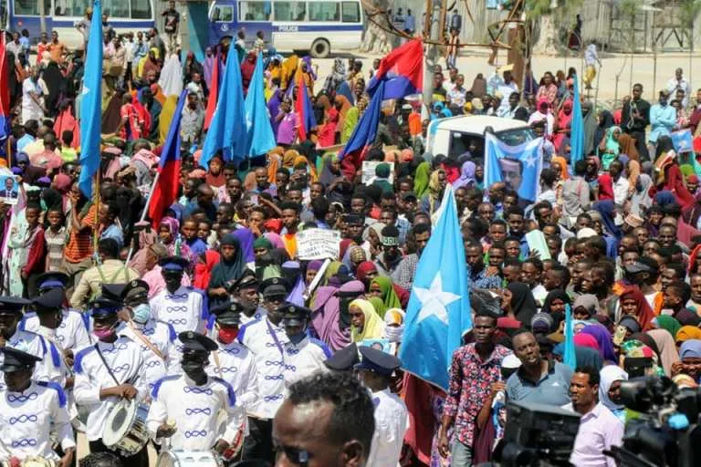 Kumanaan dad ah oo laga kala keenay degmooyinka gobolka Banaadir ayaa banaan baxan ka kala dhigaya qeybo kamid ah magaalada Muqdisho, waxaana dibad baxayaasha ku dhawaaqayaan hadalo ay ku taageerayaan baaqa Madaxweyne Farmaajo.
