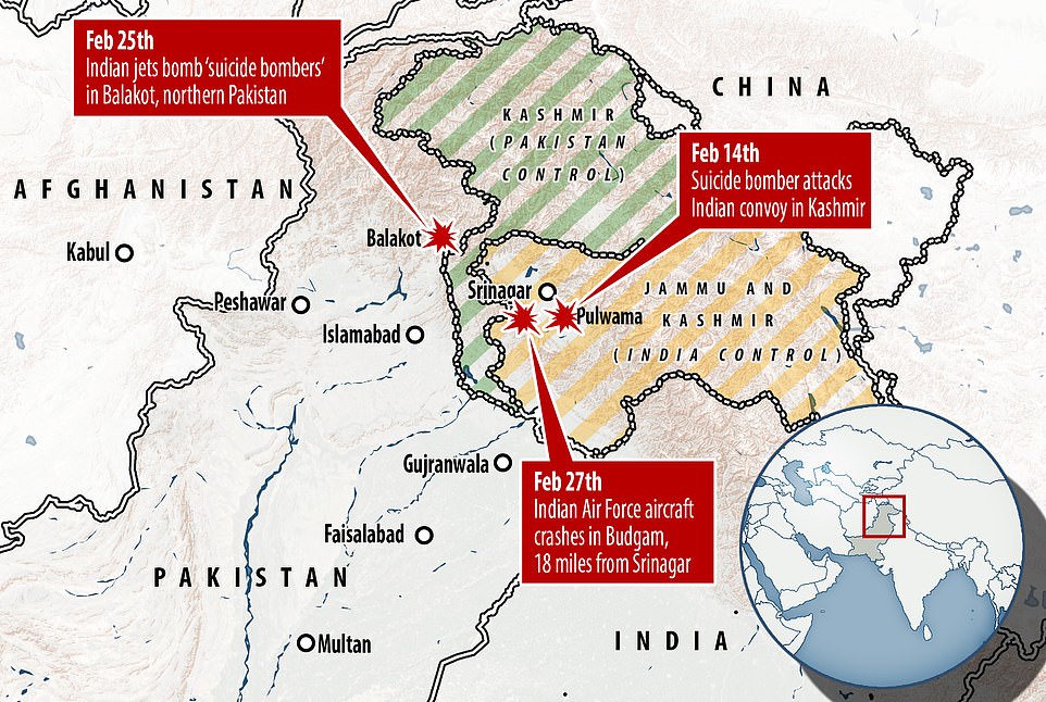Hindiya ayaa sheegtay in saddex diyaaradood oo ay leedahay Pakistan ay soo galeen Arbacadii maanta Hawada Kashmir qeybta ay maamusho Hindiya, hase ahaatee ay joojiyeen diyaaradaha dagaalka Hindiya, dibna ay u laabteen.