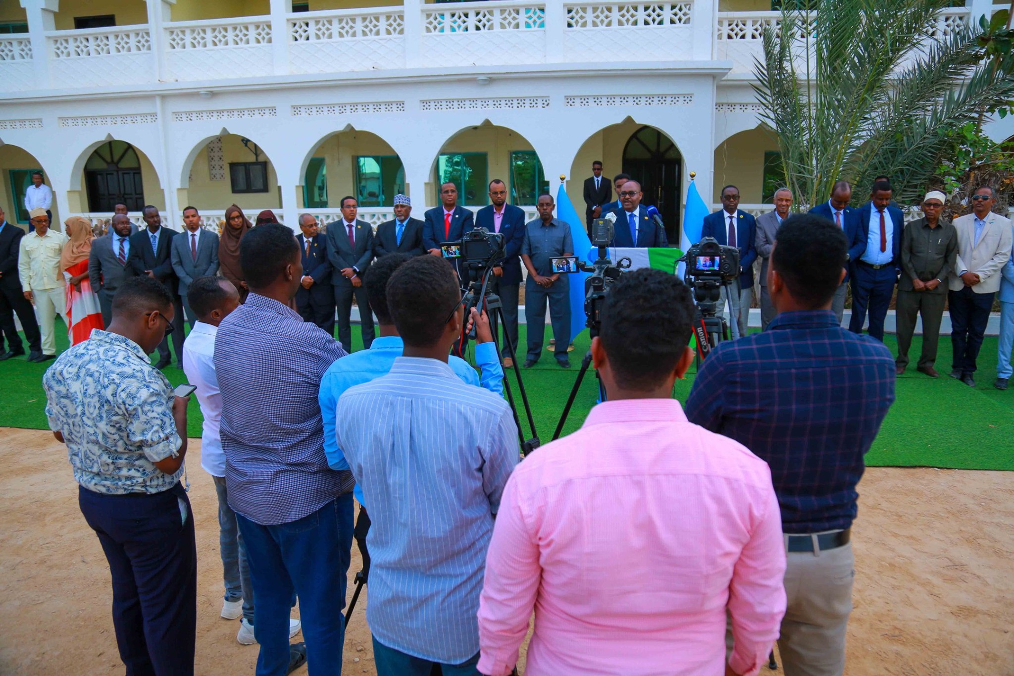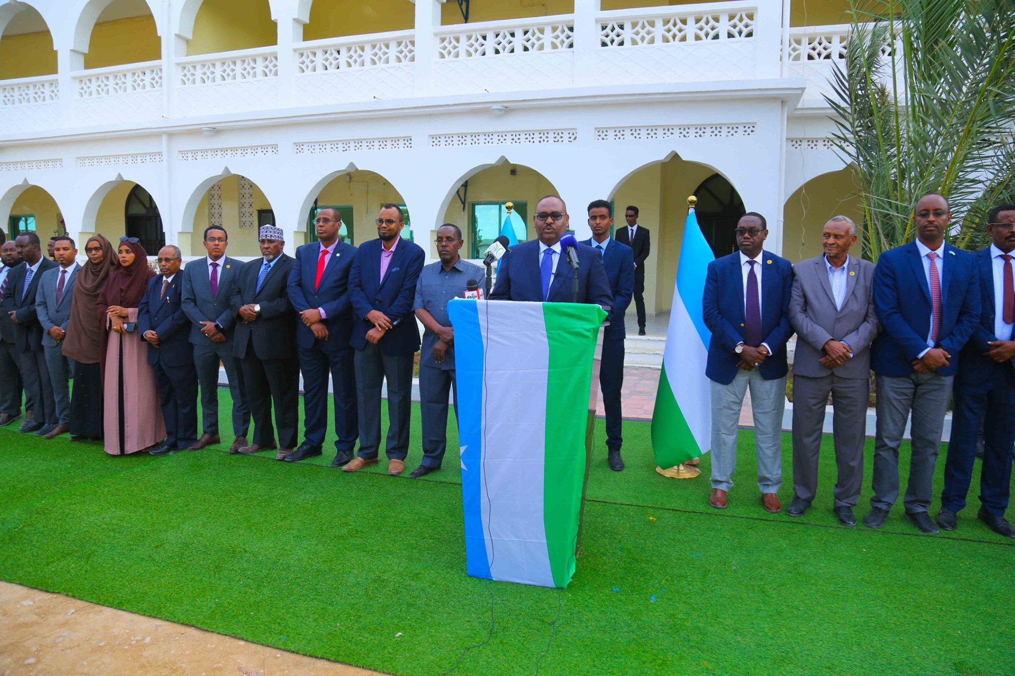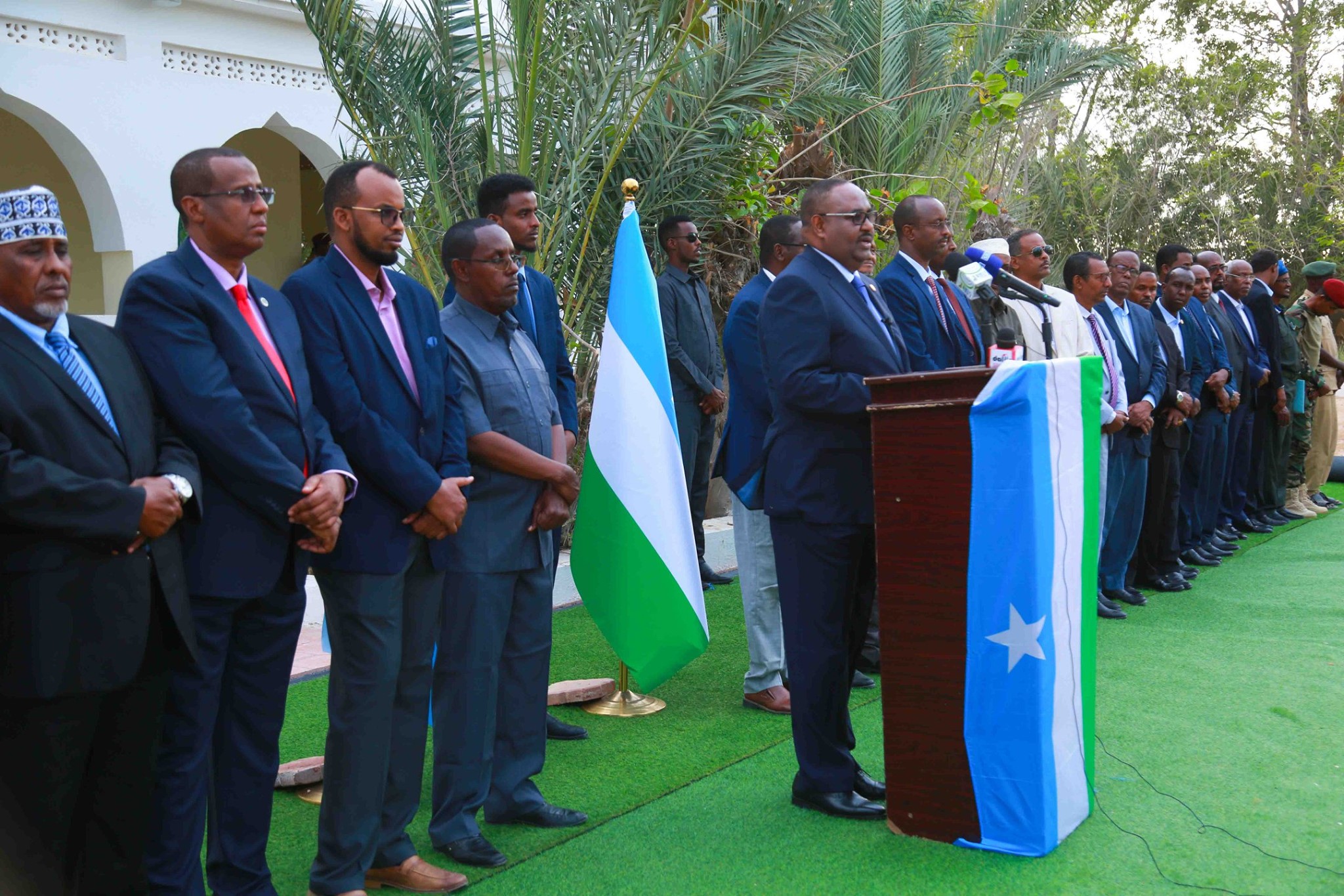 Madaxweynaha Puntland Siciid Cabdullaahi Deni oo ay hareeraha ka joogaan inta badan xubnihiisa Golihiisa Wasiirada ayaa sheegay in Madaxweyne Farmaajo hareer maray nidaamyadii lagu hashiiyey, isagoo ku eedeeyey in dowladiisu howl ka dhigatay sidii ay ula dagaalami lahayd maamul Goboleedyada.
