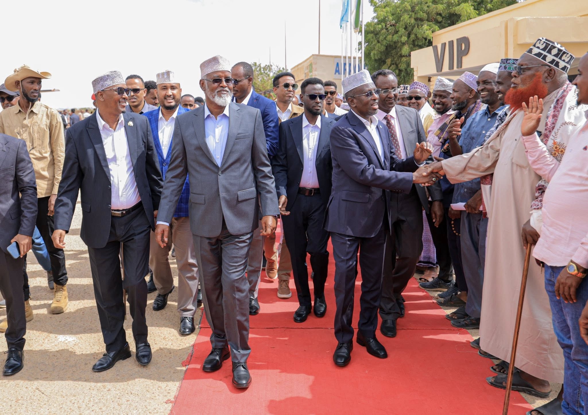 Madaxweynaha Maamulka Jubaland ayaa garoonka dioyaaradaha sayid Maxamed Cabddule Xasan kaga hor tagay Shariif Sheekh Axmed Shariif isagoona soo dhaweyn kadib u galbiyay VIP-da garoonka kadibna waxaa loo sii galbiyay dhanka Madaxtooyada Jubaland.