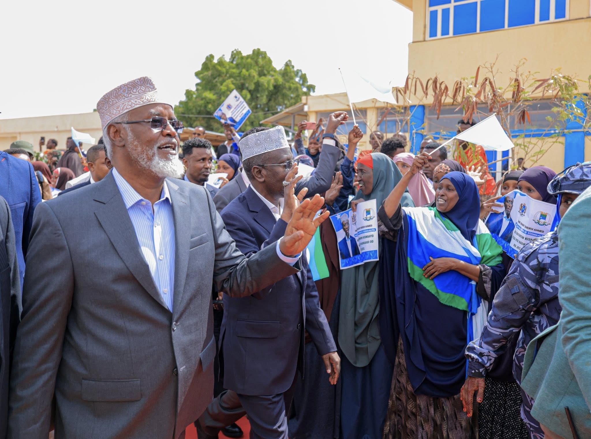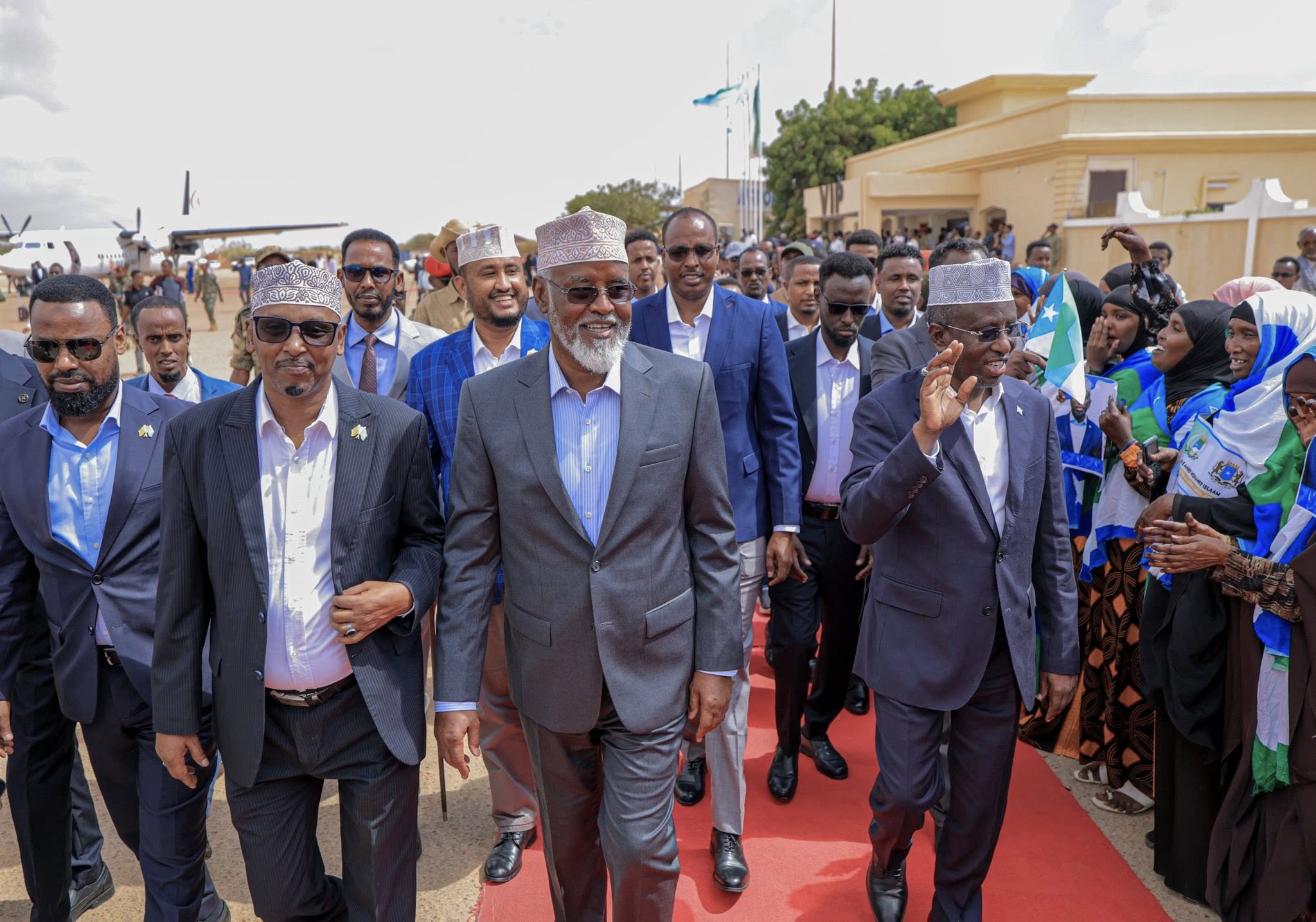 Madaxweynaha Maamulka Jubaland ayaa garoonka dioyaaradaha sayid Maxamed Cabddule Xasan kaga hor tagay Shariif Sheekh Axmed Shariif isagoona soo dhaweyn kadib u galbiyay VIP-da garoonka kadibna waxaa loo sii galbiyay dhanka Madaxtooyada Jubaland.