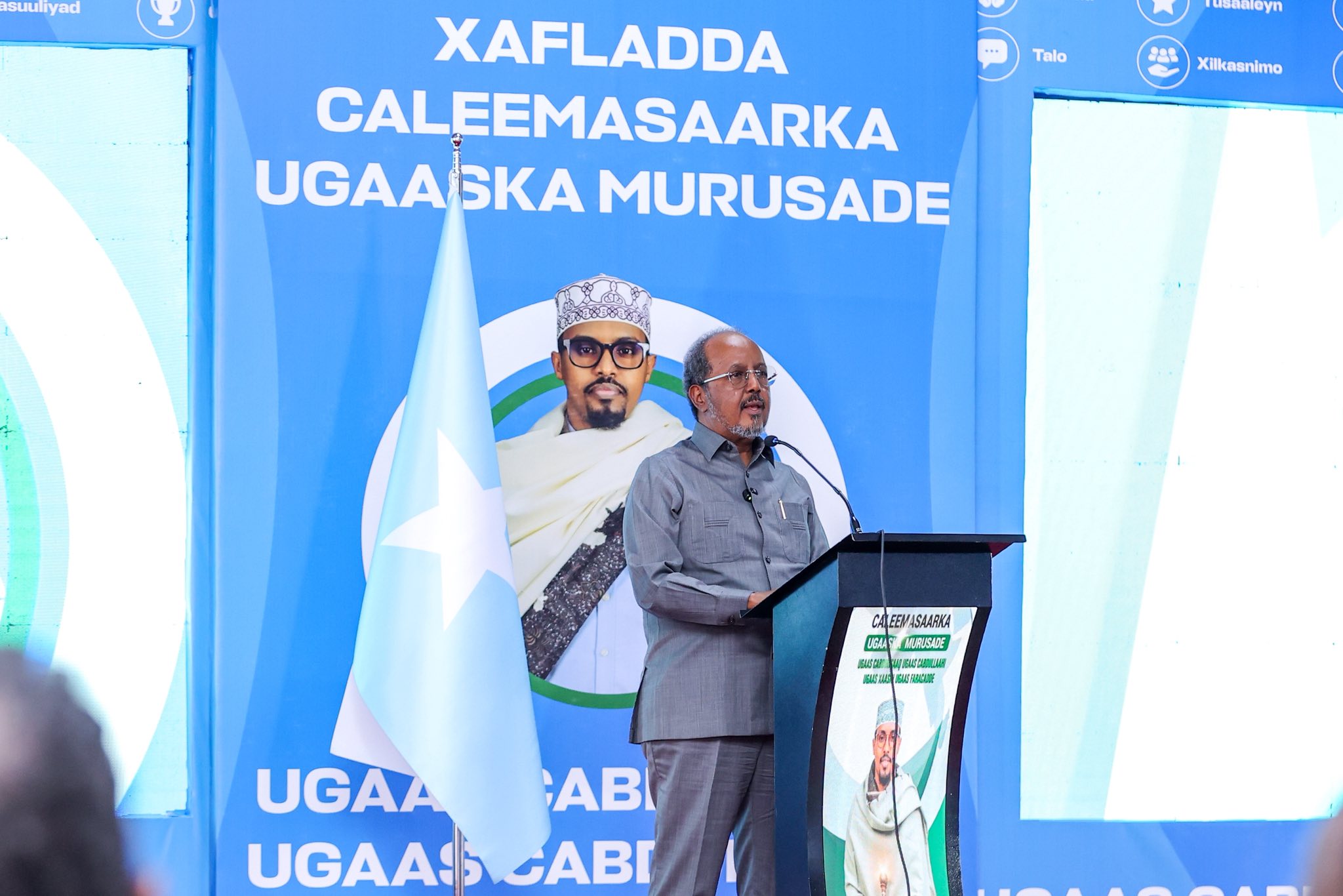Madaxweynaha Jamhuuriyadda Federaalka Soomaaliya Mudane Xasan Sheekh Maxamuud ayaa maanta ka qeyb galay munaasabad dhaqan oo lagu caleemo-saarayay Ugaas Cabdirisaaq Ugaas Cabdullaahi Ugaas Xaashi Ugaas Faracade, taasi oo ka dhacday magaalada Muqdisho.