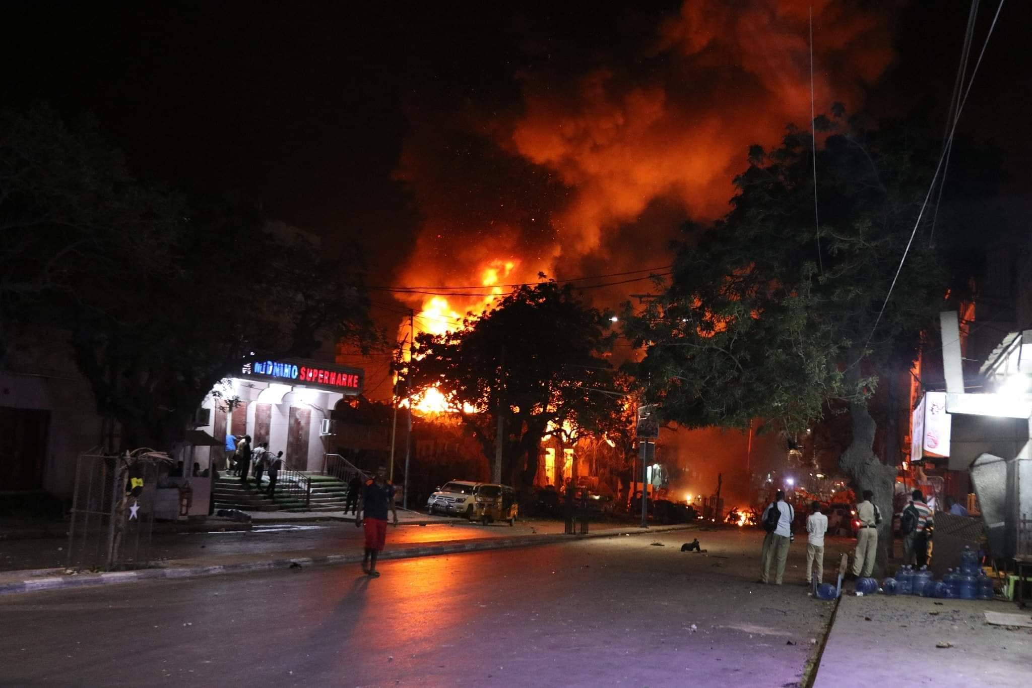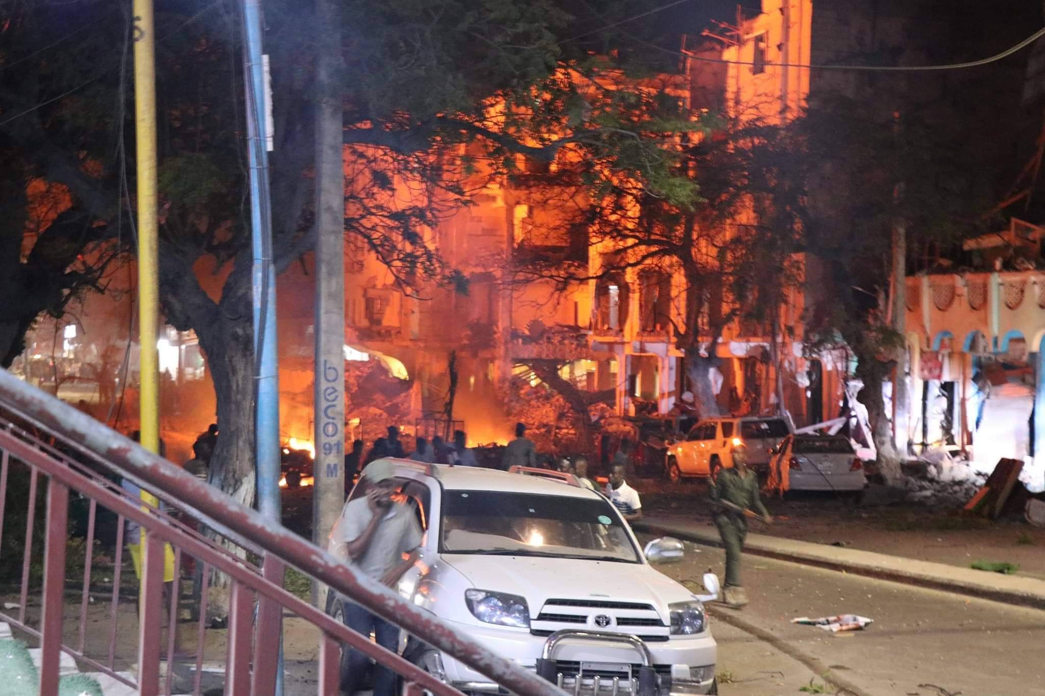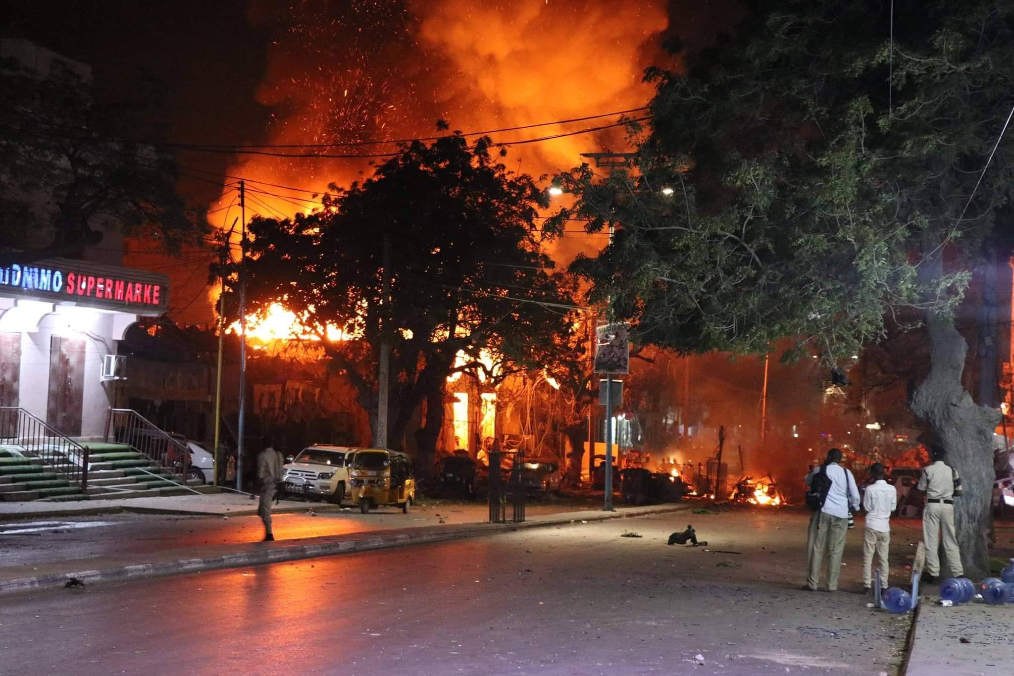 Dhismooyin goobo ganacsi ayaa gubtay & gaadiid meesha yaalay, kuwaasi oo ku gubtay dabka ka dhashay qaraxa xoogan ee caawa ka dhacay Muqdisho.