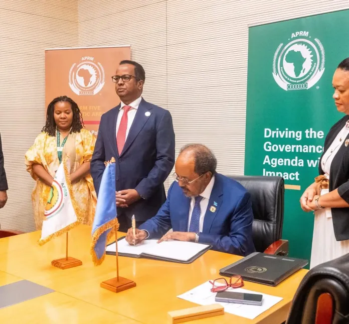 Dowladda Federaalka Soomaaliya ayaa si rasmi ah ugu biirtay habraaca African Peer Review Mechanism (APRM), oo uu aas-aasay Midowga Afrika, kaas oo dalalka xubnaha ka ah ururkan ay isku qiimeeyaan, iskulana xisaabtamaan, si loo hormariyo maamul wanaagga.