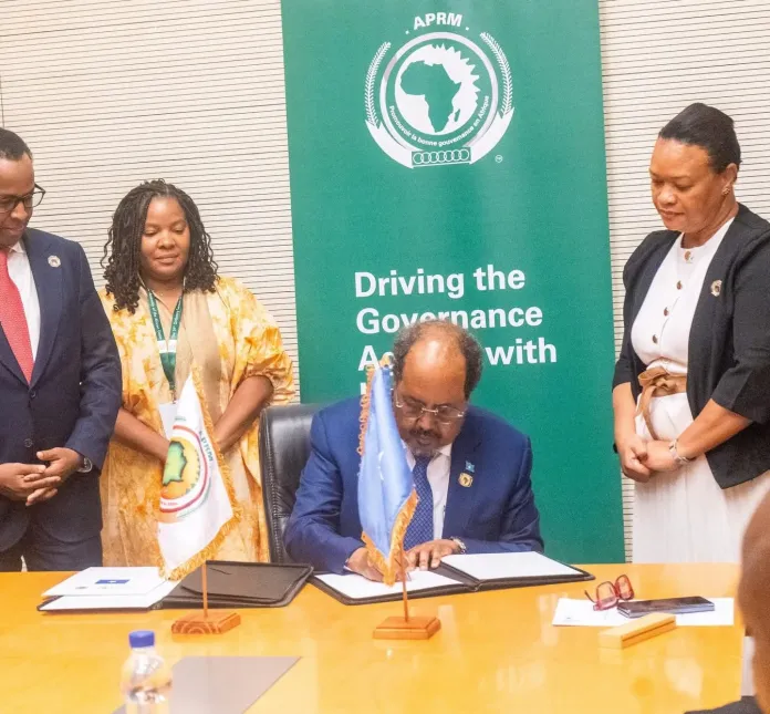Dowladda Federaalka Soomaaliya ayaa si rasmi ah ugu biirtay habraaca African Peer Review Mechanism (APRM), oo uu aas-aasay Midowga Afrika, kaas oo dalalka xubnaha ka ah ururkan ay isku qiimeeyaan, iskulana xisaabtamaan, si loo hormariyo maamul wanaagga.