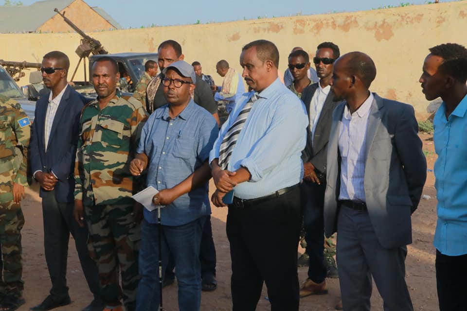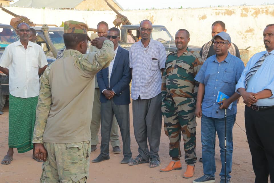 Wasiirka Amniga Galmudug Axmed Macalin Fiqi iyo masuuliyiin kale oo katirsan maamulka Galmudug ayaa goob joog ka ahaa munaasabada ciidankan ku wareejinayeen beel kamid ah beelaha dega gobolka Mudug.
