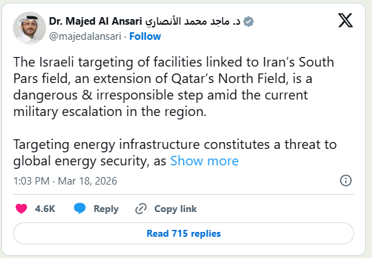 “Daqiiqado ka hor, qaybo ka mid ah xarumaha gaaska ee ku yaal Aagga Tamarta Dhaqaalaha Gaarka ah ee Koonfurta Pars ee Asaluyeh waxaa ku dhacay gantaallo ay soo rideen cadowga Mareykanka iyo Sahyuuniyadda,” ayuu ku warramay telefishanka dawladdu, isagoo soo xiganaya Ehsan Jahanian, oo ah guddoomiye ku xigeenka gobolka koonfurta Bushehr, halkaas oo xaruntu ku taal.