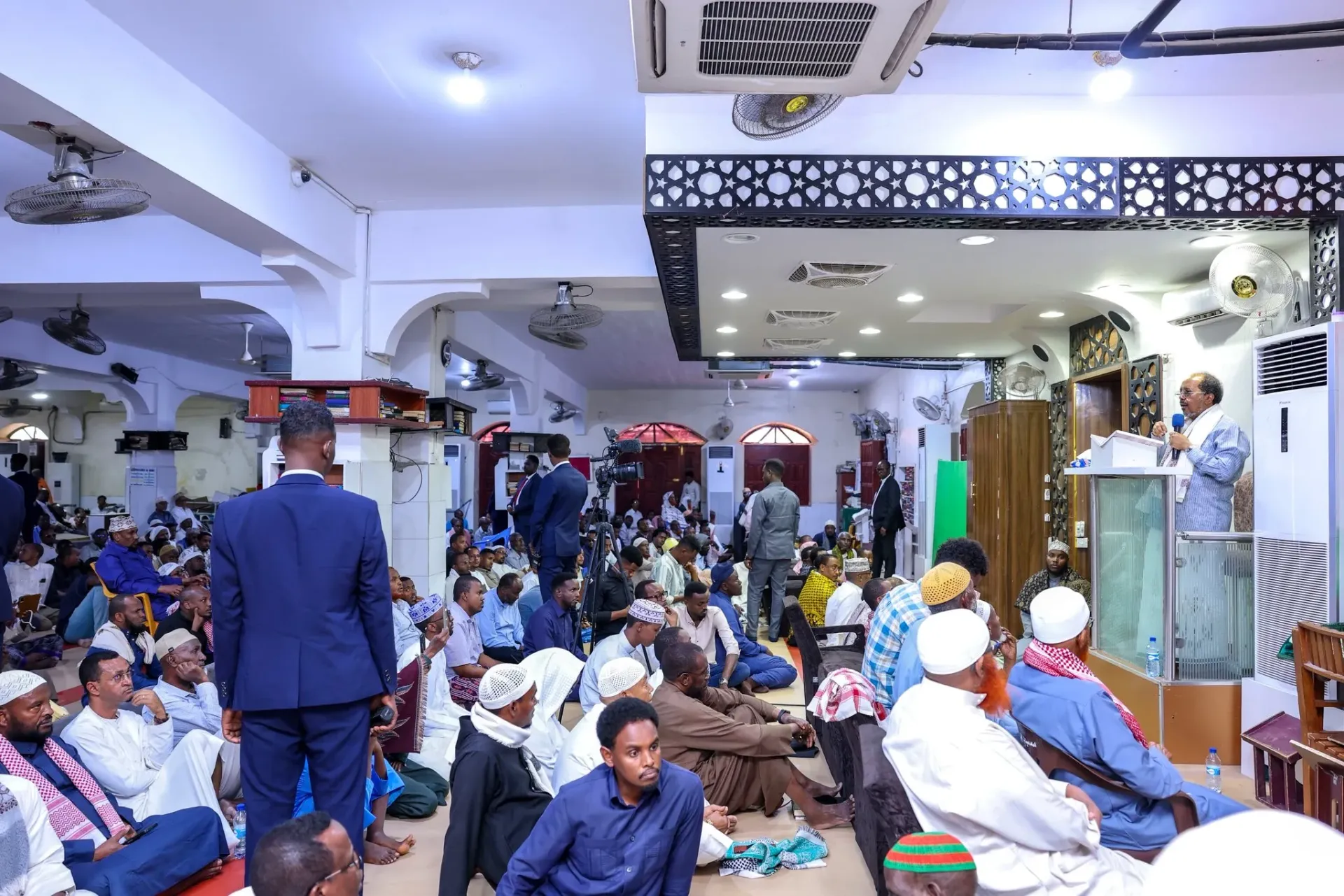 Madaxweynaha ayaa khudbad uu ka jeediyay masjidka si qoto dheer uga hadlay xaaladda guud ee dalka, isaga oo faahfaahin ka bixiyay dadaallada diblumaasiyadeed iyo kuwa sharci ee ay Dowladda Federaalka Soomaaliya ku wajahayso faragelinta shisheeye iyo tallaabooyinka lidka ku ah midnimada iyo madaxbannaanida qaranka.