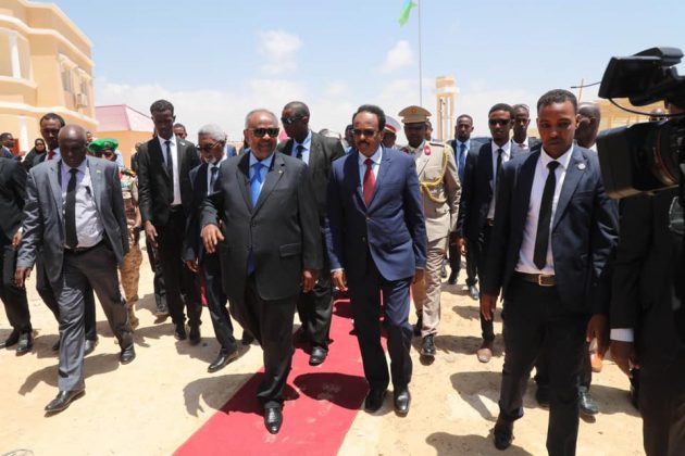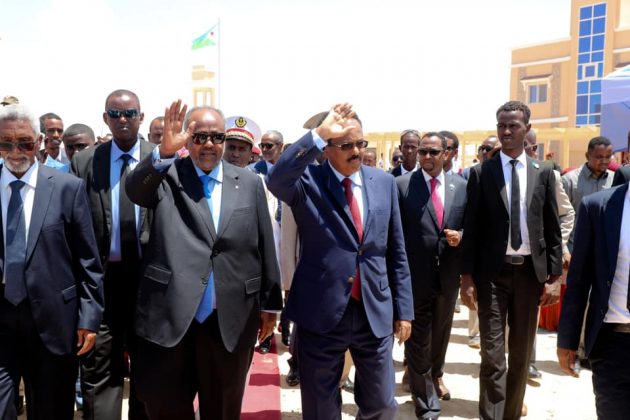 Madaxweynaha Soomaaliya Maxamed C/llaahi Farmaajo iyo Madaxweynaha Jabuuti Ismaaciil Cumar Geelle ayaa si wadajir ah xarigga uga jaray dhismaha cusub ee Safaaradda Jabuuti ee Muqdisho, taasoo dhowaan la dhisay.