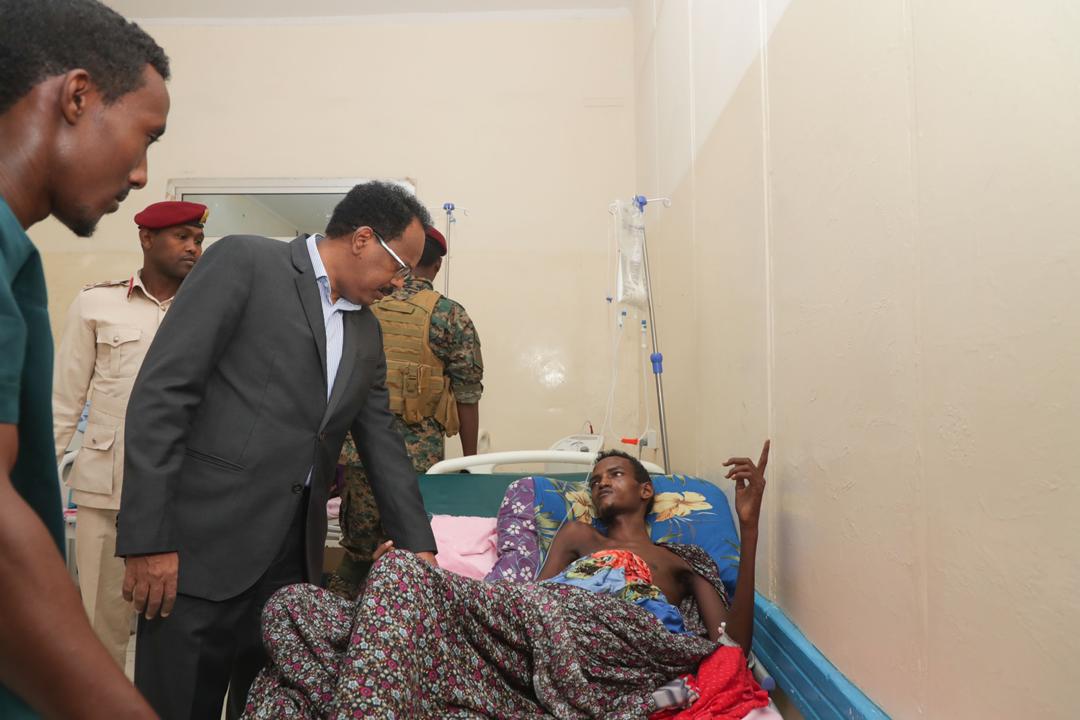 Madaxweynaha Jamhuuriyadda Federaalka Soomaliya Mudane Maxamed Cabdullaahi Farmaajo ayaa saaka booqday Isbitaalka Madiina si uu ugu kuurgalo xaaladda caafimaad ee dadkii ku dhaawacmay weerarradii ka dhacay magaalada Muqdisho.