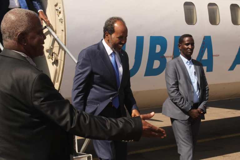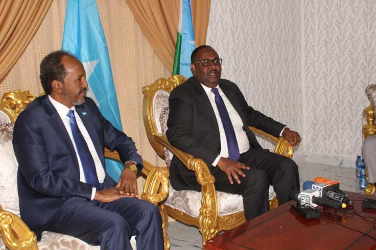 Madaxweynaha Maamul goboleedka Puntland Siciid Deni iyo ku xigeenkiisa ayaa ka mid ahaa dadkii soo dhoweeyay wafdiga uu horkacayay Xasan Sheekh Maxamuud.