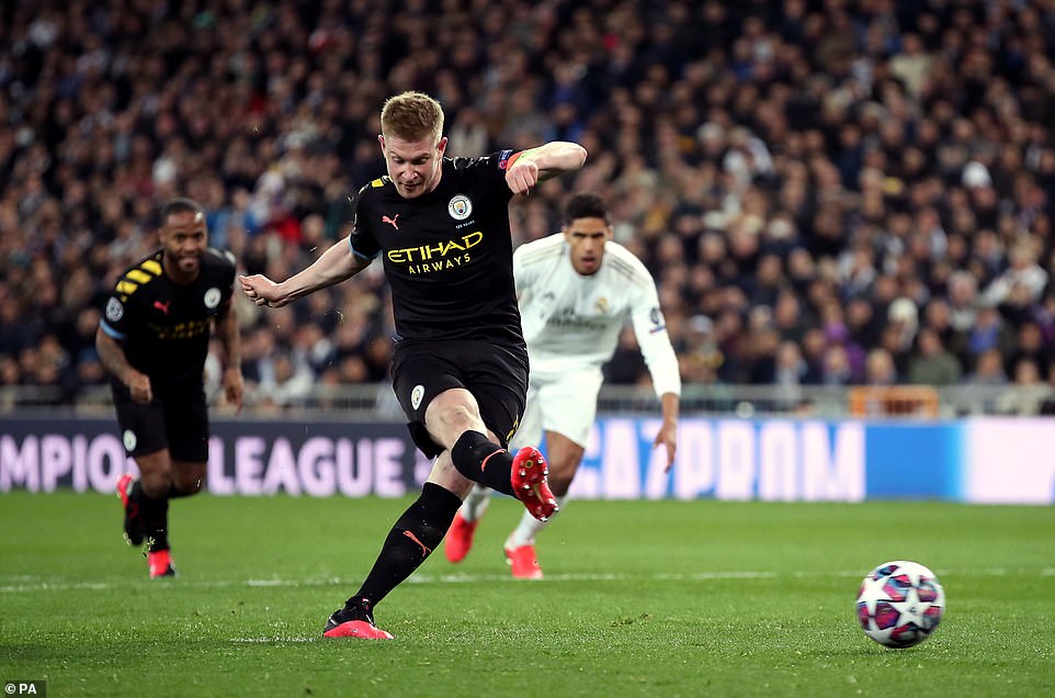 Ka dib goolkaas , City dhaq dhaqaaqa waa xoojiyeen waliba garabka middig ilaa ay Real ku qasabeen qalad rigoore keenay waxaana dhaliyay Kevin De Bruyne daqiiqadii 83-aad , waxaana qaladkaas sameeyay Daniel Carvaja iyadoo uu ku galay Raheem .