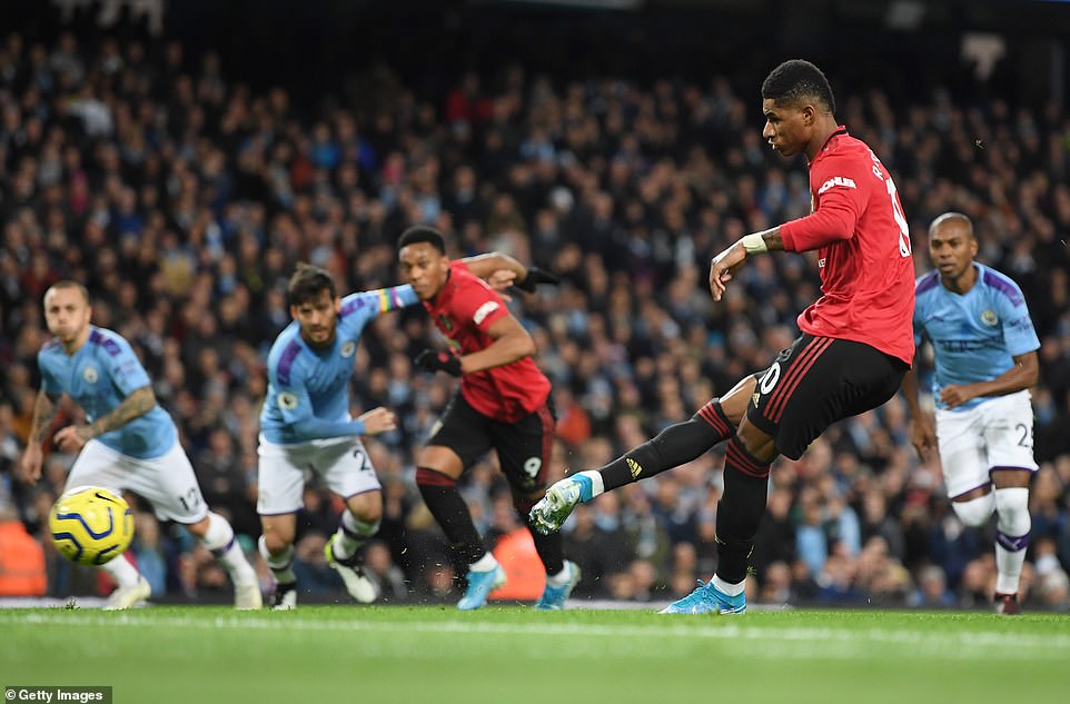 Rashford ayaa dhaliyay waxaana qaladkaas sameeyay Bernando Silva oo Rashford taakeeyay , waxa ayna United ay soo bandhigeen kubad iskun xeran dhan waliba xilli ay jireen fursado United ay iska qasaarinayeen .
