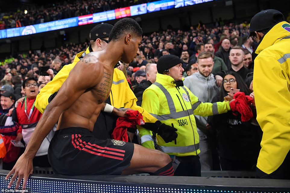 Daqiiqaddii 26-aad kubad cajiib aheyd ayuu Rashford ku qajafeeyay goosha City balse bitrta ayay ka dhacday , waxa ayna City ka sheeganayeen in fursado xaqiiq ah abuuraan isla markaana si sax ah kubadda u gaarsiiyaan goosha Man United .
