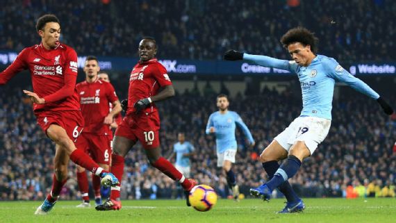 Leroy Sane ayaa goolka guusha ah City u dhaliyay daqiiqadii 72-aad, waxaana sidaa ay kooxda Manchester ka dhisan afar dhibcood oo keliya uga hooseysaa Liverpool.