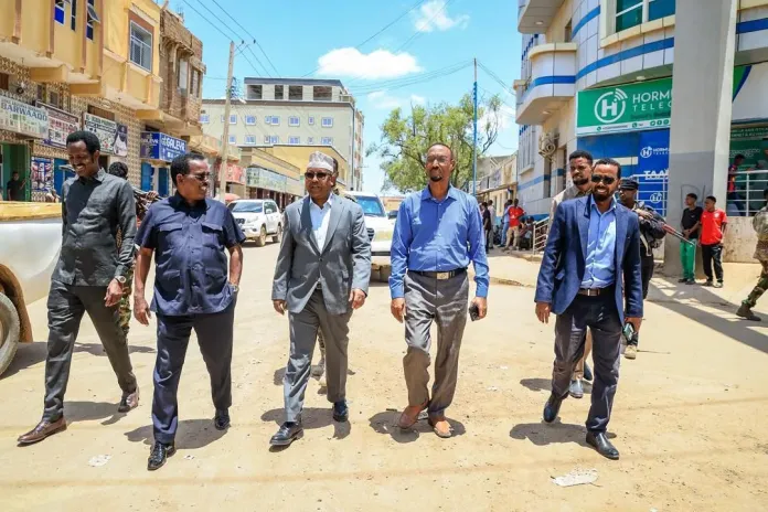 Wasiirka Gaashaandhigga Soomaaliya, Axmed Macallin Fiqi, iyo Wasiirka Arrimaha Gudaha, Federaalka iyo Dib-u-heshiisiinta, Cali Yuusuf Cali (Xoosh) ayaa booqasho ku tegay qaybo ka mid ah magaalada Baydhabo.