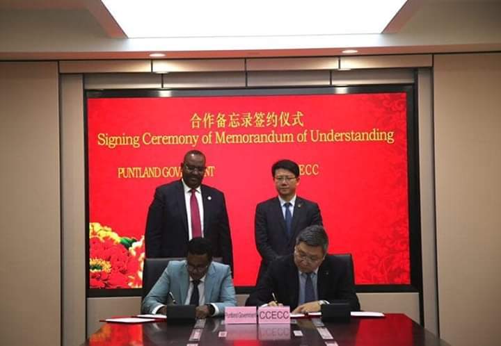 Wasiirka Wasaaradda Kaluumaysiga iyo Khayraadka Badda Puntland Faarax Cawaash iyo Madaxa Shirkada CCECC ayaa kala saxiixday dhismo deked kalluumaysi oo casri ah oo shirkaddu ka hirgalinayso degmo Ayl ee gobolka Nugaal, taasi oo horumarinaysa ka faa’iidaysiga khayaraadda badda, korna u qaadaysa shaqa abuurka iyo dhaqaalaha dalka, Isla markaana xoojinaysa xidhiidhka ganacsi ee ka dhexeeya Puntland iyo dalka Shiinaha.