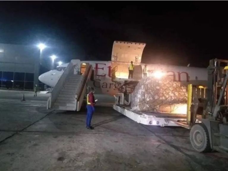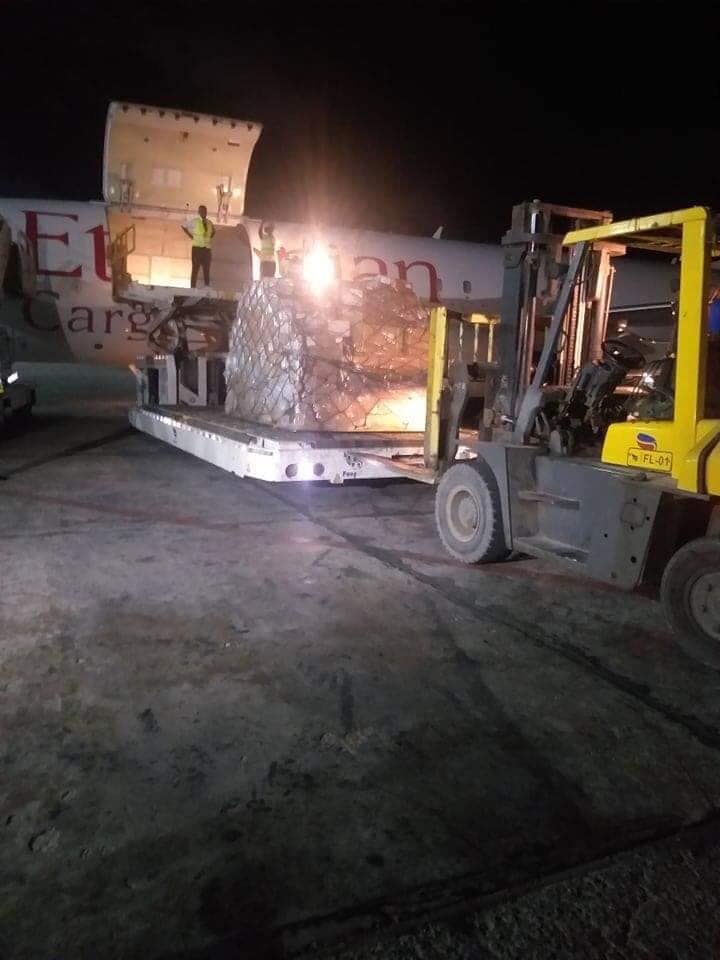 Waxaa caawa magaalada Muqdisho soo cagadhigatay dayuurad ay leedahay Ethiopian Airlines oo siday shixnad gargaar ah oo ka kooban qalab loogu talo galay cudurka Coronavirus.