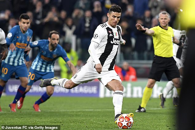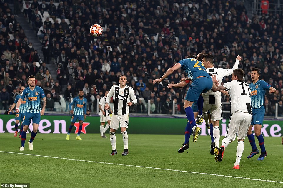 Cristiano Ronaldo ayaa saddexleey ku xaaqay Atletico Madrid isagoona Juventus u soo saaray wareega sideed dhammaadka Champions League.