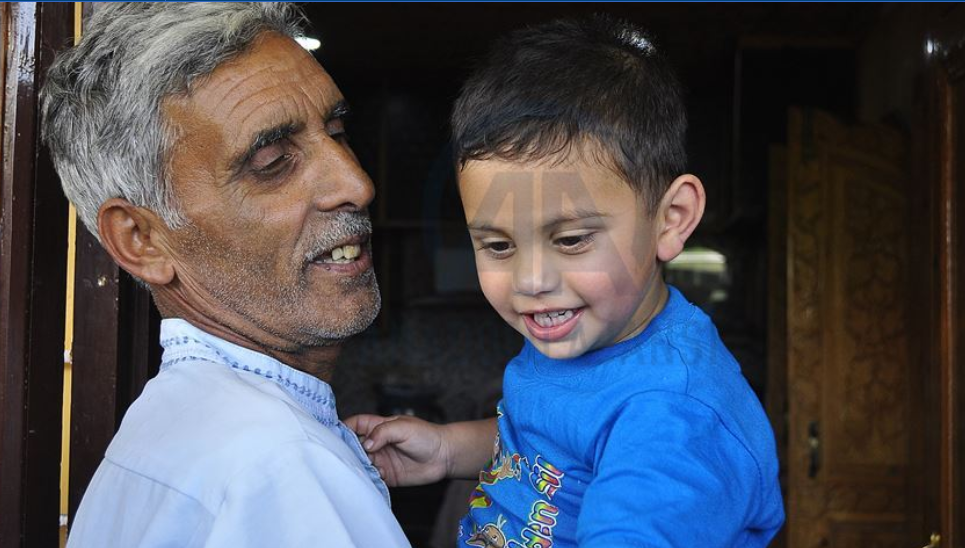 Sawirkan oo caro badan dhaliyay ayaa la qaaday xilli dagaal u dhaxeeya ciidamada Hindiya iyo koox kasoo horjeeda uu ka socday magaalada Sopore ee Kashmiir qeybta Hindiya ay maamusho, waxaana sawirka laga dheehan karay canugga yar oo wajigiisa argagax ay ka muuqato, awoowgii oo meyd ahna ku dul oynaya.
