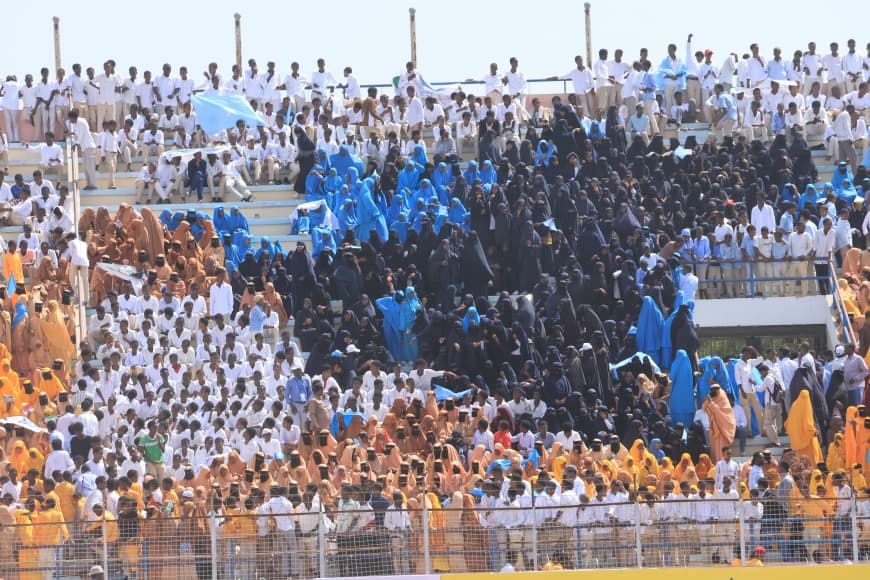 Munaasabad si weyn loo soo abaabulay ayay Dowlada Somalia saaka ku qabatay garoonka Staidum Muqdisho xili wali ay socoto munaasabada iyadoo masuuliyiintuna khud-badana jeedinaayaan.