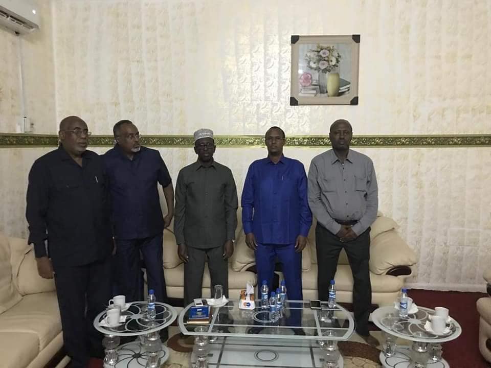 Madaxweynaha Maamulka Hir-Shabelle Maxamed Cabdi Waare iyo kuxigeenkiisa iyo qaar ka mid ah Golaha wasiirada maamulkaas ayaa waxaa ay hooyga uu ka degan yahay Magaalada muqdisho ku booqdeen Madaxweynihii hore ee dowladii KMG aheyd ahna hoggaamiyaha Xisbiga himilo Qaran Sheekh Shariif sheikh Axmed.