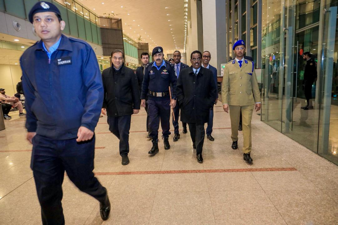 Markii wafdigu soo gaaray caasimadda Islamabad, waxaa si diiran ugu soo dhaweeyay mas’uuliyiin ka tirsan dowladda Pakistan iyo Safiirka Soomaaliya ee dalkaasi, Danjire Sheikhnuur Maxamed Xasan.