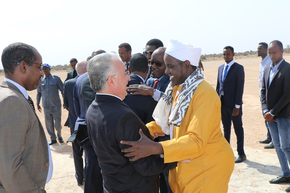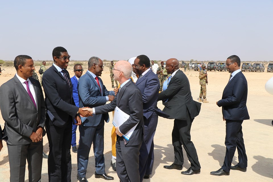 Wafdiga ayaa waxaa sidoo kale soo dhaweyntiisa ka qeyb galay wasiirka amniga Soomaaliya iyo mas’uuliyiin kale,waxaana Xubnaha Dhuusamareeb gaaray ka mid ah, Wakiilka Qaramada,Wakiilka Midowga Afrika,IGAD iyo safiirada wadamo dhowr ah u jooga Soomaaliya.