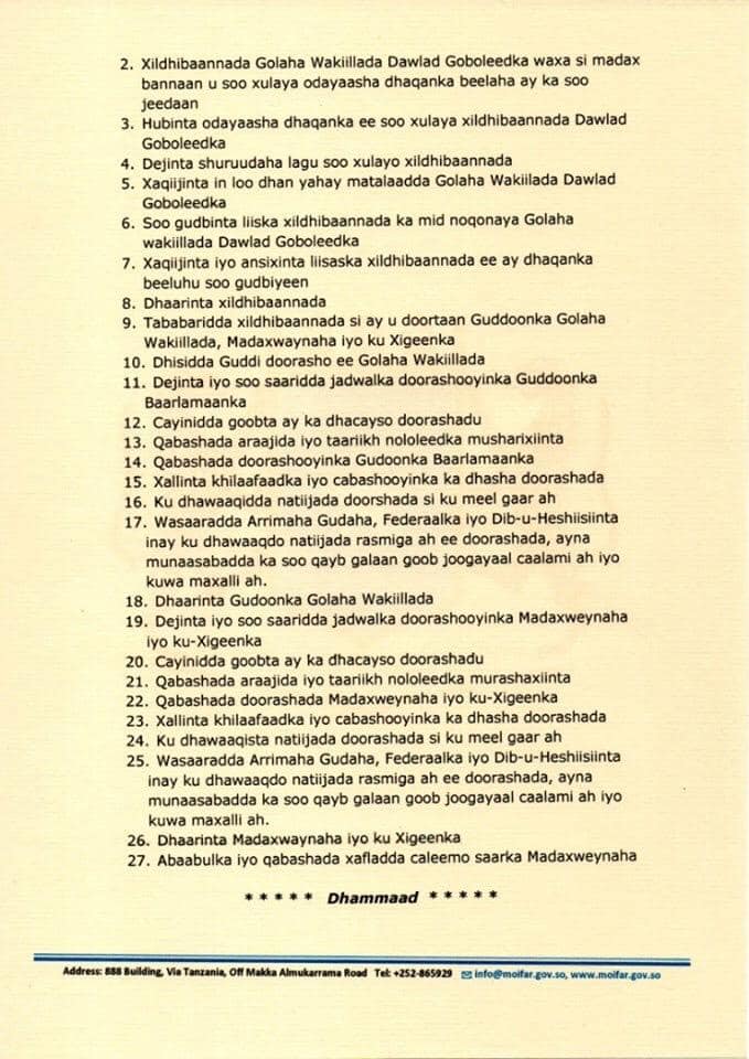 Wasaaradda Arrimaha Gudaha iyo Federaalka Xukuumadda Soomaaliya ayaa soo saartay mabaa’diisa iyo Habraaca doorashooyinka dowlad goboleedyada, iyadoo Wasaaraddu shaacisay in Mabda’a guud oo asalka uu yahay in la qabto doorashooyin ku dhaca hannaan dimoqraadi oo xor iyo xalaal ah