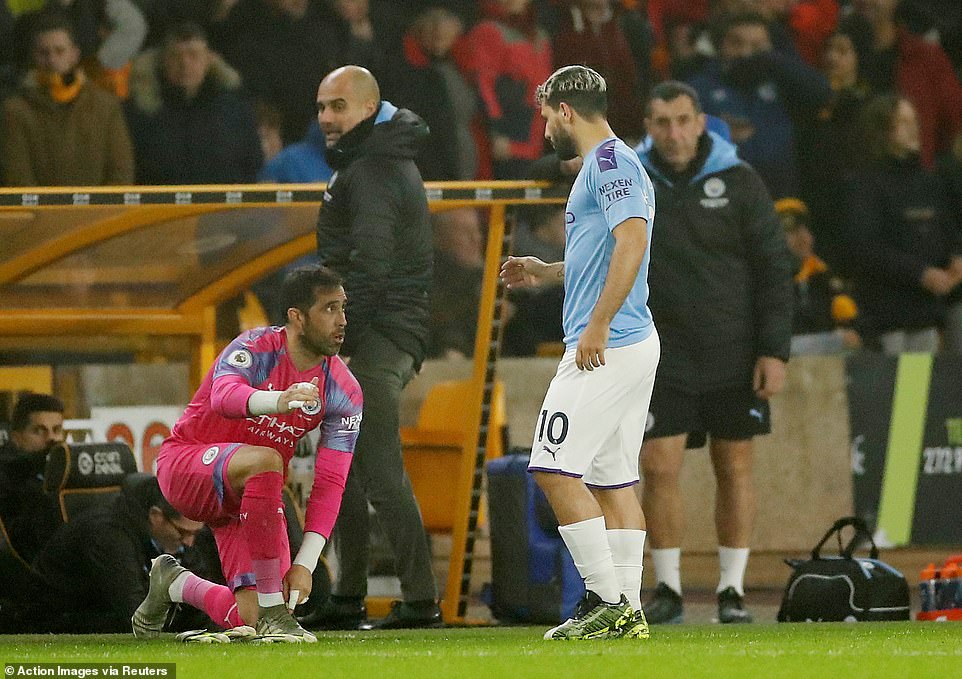 Tababare Pep ayaa sameeyay badel deg deg ah isaga oo saaray weeraryahankiisa Aguero iyadoo la soo giliyay goolhaye Claudio Bravo .