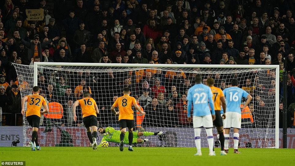 Daqiiqaddii 12-aad ayaa loo taagay goolhaye Ederson kaarka cas ka dib markii uu si ula kac ah u carqaldeeyay weeraryahan Wolverhampton kaasi oo shabaqiisa booqan lahaa haddii uusan qaladkaas kula gali laheyn banaanka qadka rigoorada .