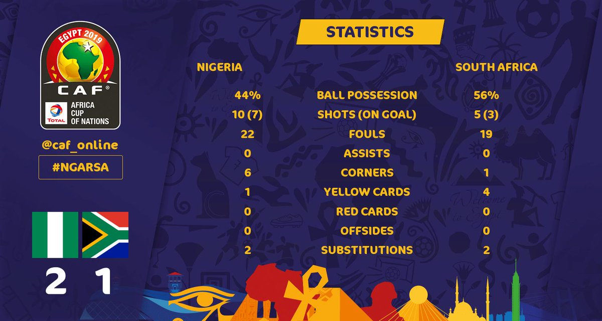Daqiiqadii 89-aad ayuu xulka Qaranka Nigeria wadnaha gooyay xulka South Africa kadib markii ay dhaliyeen goolka 2-aad ee ciyaarta iyaga oo uu u dhaliyay xiddiga William Troost-Ekong kaas oo ciyaarta ka dhigay 2/1.