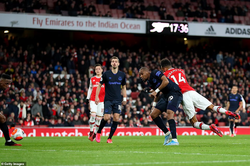 Arsenal qadkooda dhexe waa uu wacnaa xilli Everton halis ku ahaayeen kubadaha rogaal celiska ah waxa ayna Arsenal heleen gool labaad uu dhaliyay Pierre-Emerick Aubameyang daqiiqaddii 33-aad , waxa ayna Everton ka sheeganeysay qaladaad dhanka daafaca ah