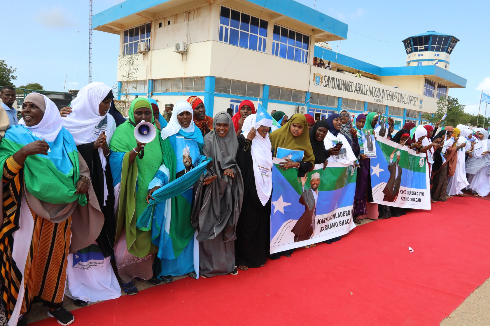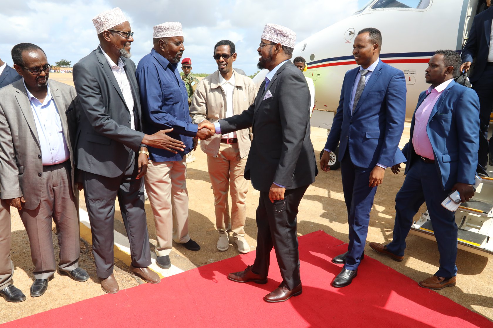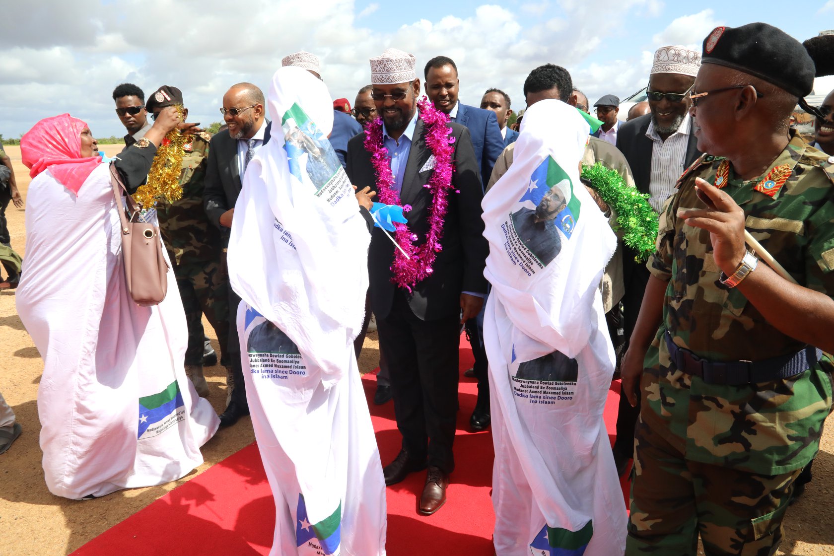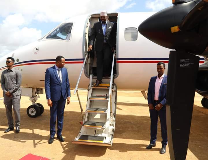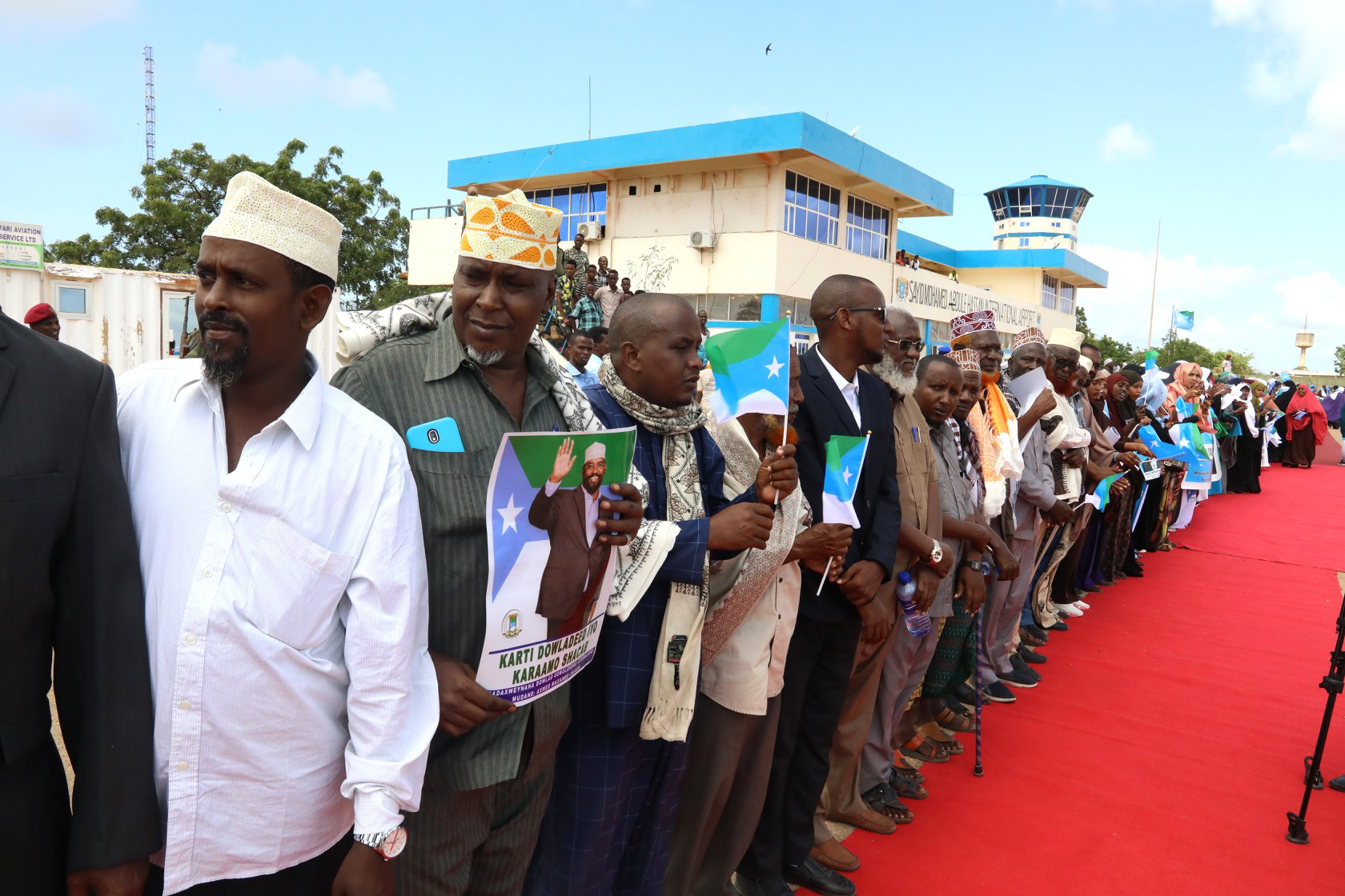 Dad u badnaa kuwa lasoo abaabulay ayaa Madaxweyne Axmed Madoobe si heer sare ugu soo dhaweeyay garoonka diyaaradaha magaalada Kismaayo iyo sidoo kale wadooyinka magaalada uu dhax marayay.