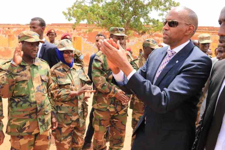 Ra’iisul Wasaaraha oo ay booqashadiisa ku wehliyeen madaxa fulinta Galmudug iyo taliyaasha ciidanka qalabka sida ayaa khudbad u jeediyay ciidanka waxa uuna ku boorriyay in ay maraan hab-raaca oo ay is isdiiwaan geliyaan si ay u helaan xuquudooda iyo agabka ciidan ee ay u baahanyihiin.
