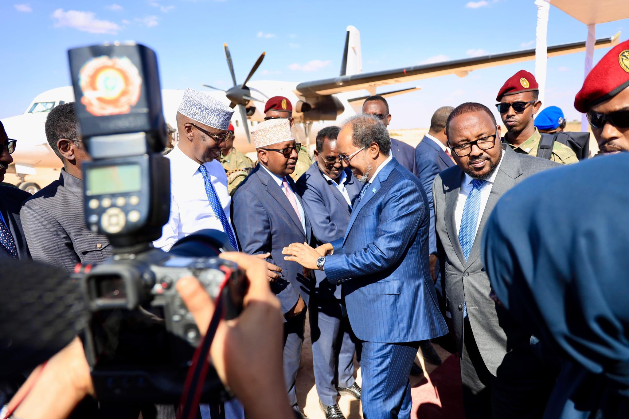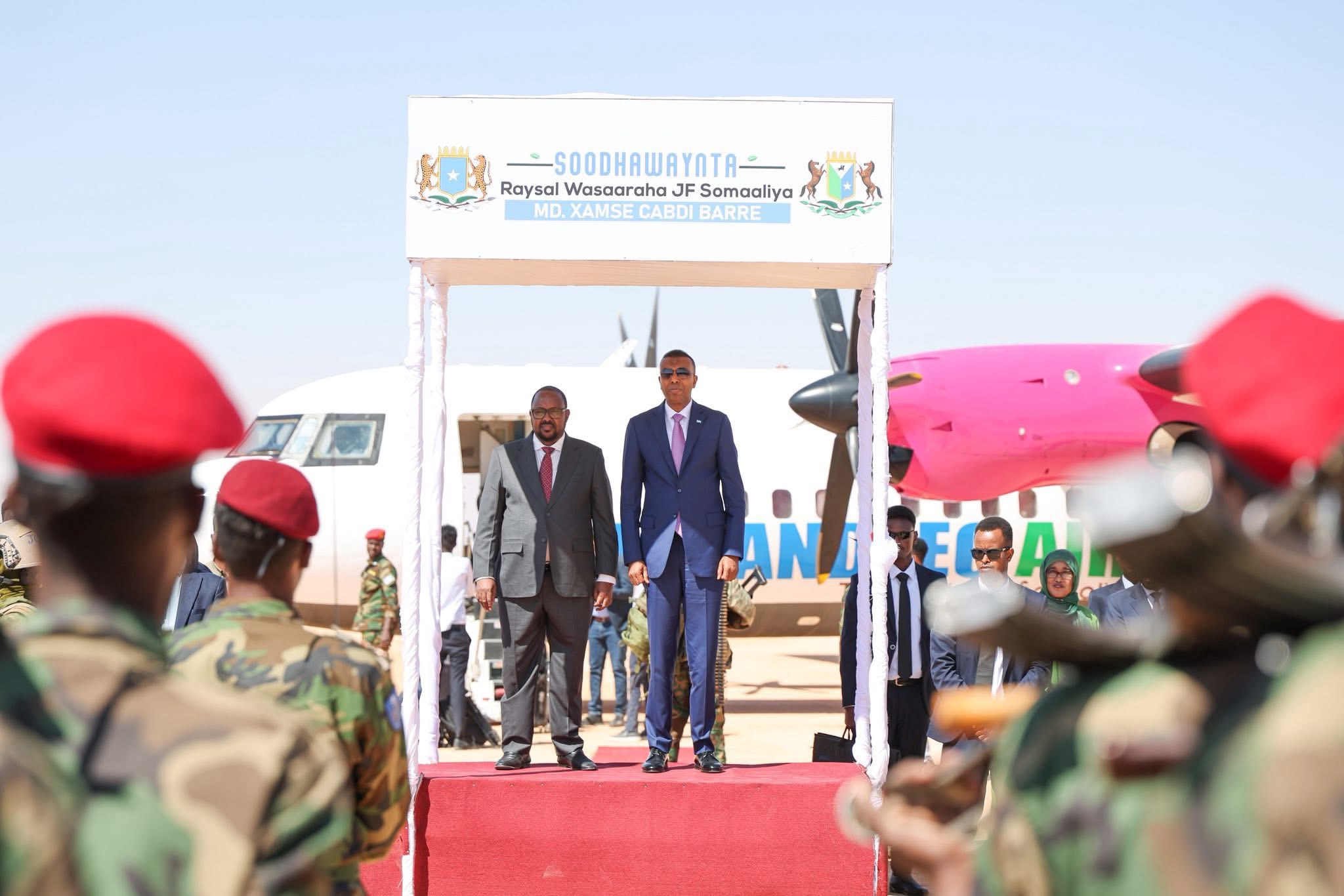 Madaxweynaha iyo wafdigiisa waxaa garoonka ku soo dhaweeyey masuuliyiin ka tirsan heerarka kala duwan ee maamulka Waqooyi Bari, dhaqanka, waxgarad, haween iyo dhalinyaro, kuwaas oo muujiyey farxad iyo soo dhoweyn ballaaran oo ku aaddan booqashadan taariikhiga ah.