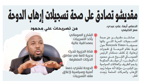 Lataliyaha Madaxweynaha Soomaaliya ee Arrimaha Carabta iyo Islaamka Sheekh Cali Maxamuud Xassan (Wajiis) ayaa beeniyay warbixin lagu daabacay wargeyska Alwaddan ee kasoo baxa Dalka Sucuudiga, taas oo lagu sheegay in dowladda Soomaaliya ay ku tuhunsan tahay dowladda Qatar taageeridda Al-Shabaab.