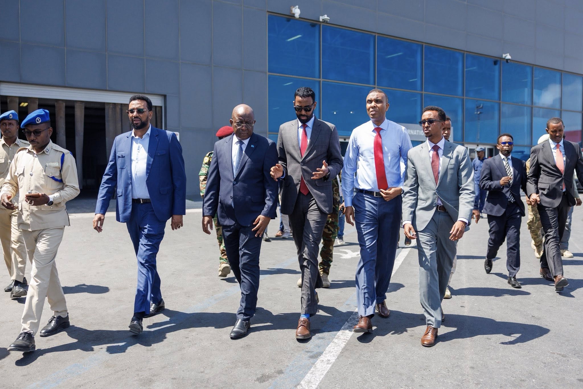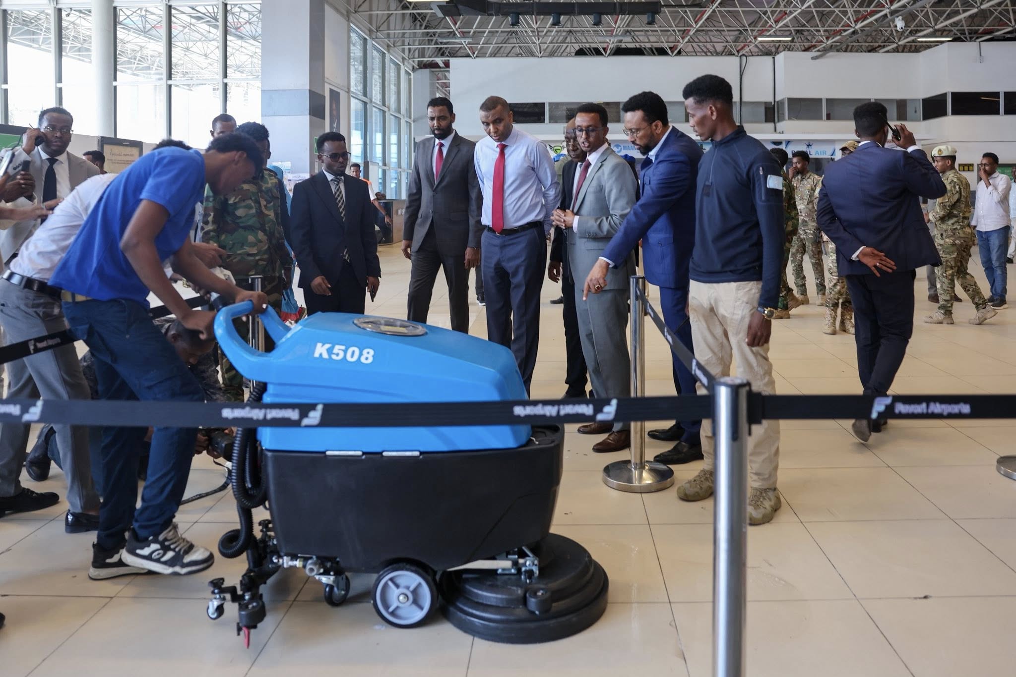 “Waa laba maalmood oo aad u kala duwan maanta iyo 14 maalmood ka hor oo aan halkaan imid, isbeddel ayaa ka muuqda garoonka, waxaan imid maanta iyadoo mashiinadii ay shaqeynayaan qaarkood oo la beddelay inta kalena ay socoto shaqadeedu” ayuu yiri Raysal Wasaaraha Xukuumadda Fedaraalka Soomaaliya Xamse Cabdi Barre.