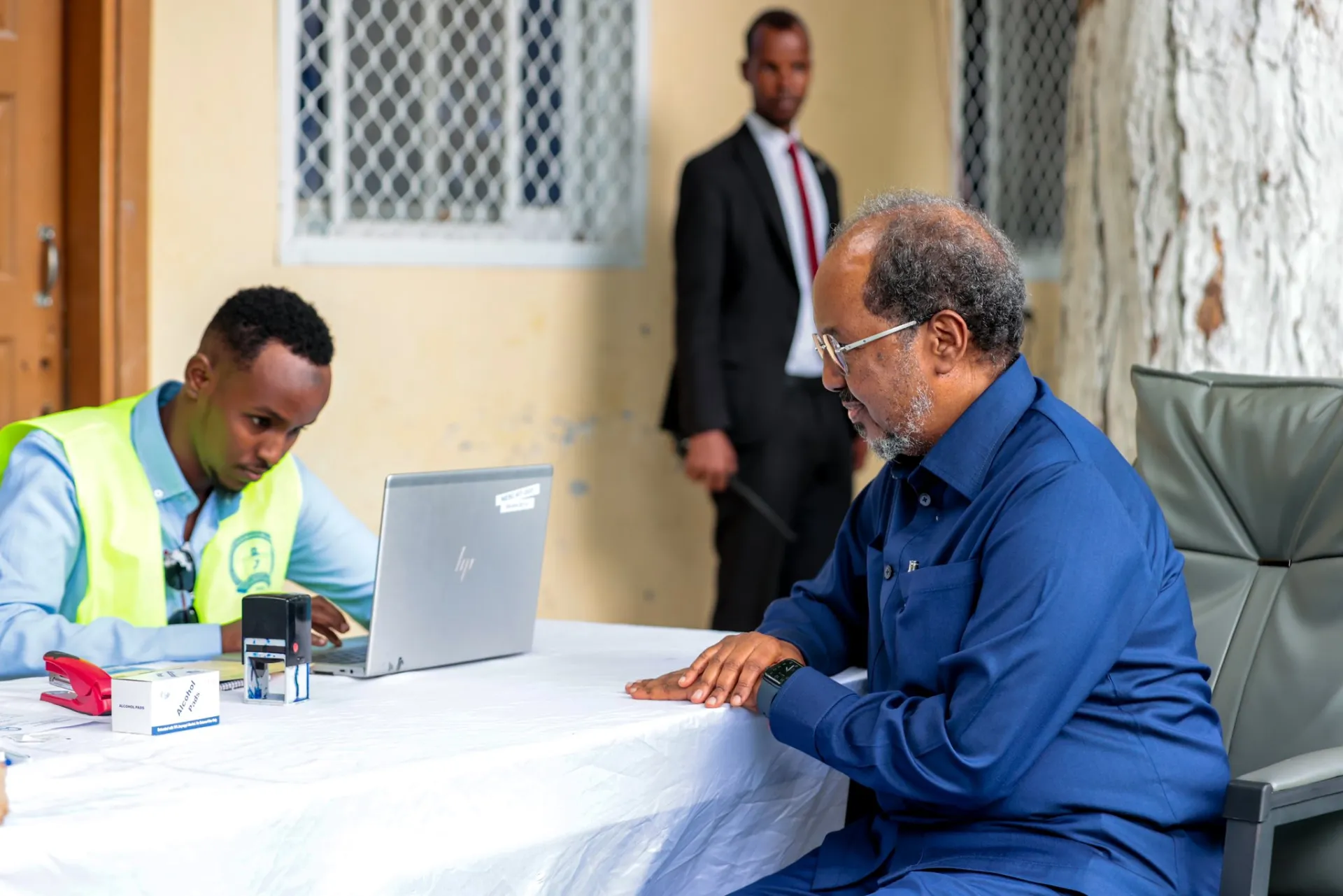 Madaxweynaha Somalia Xassan Shiikh Maxamuud ayaa manta kaarkiisa codeynta ka qaatay degmada Warta nabada oo uu markii hore iska diiwaan geliyey.