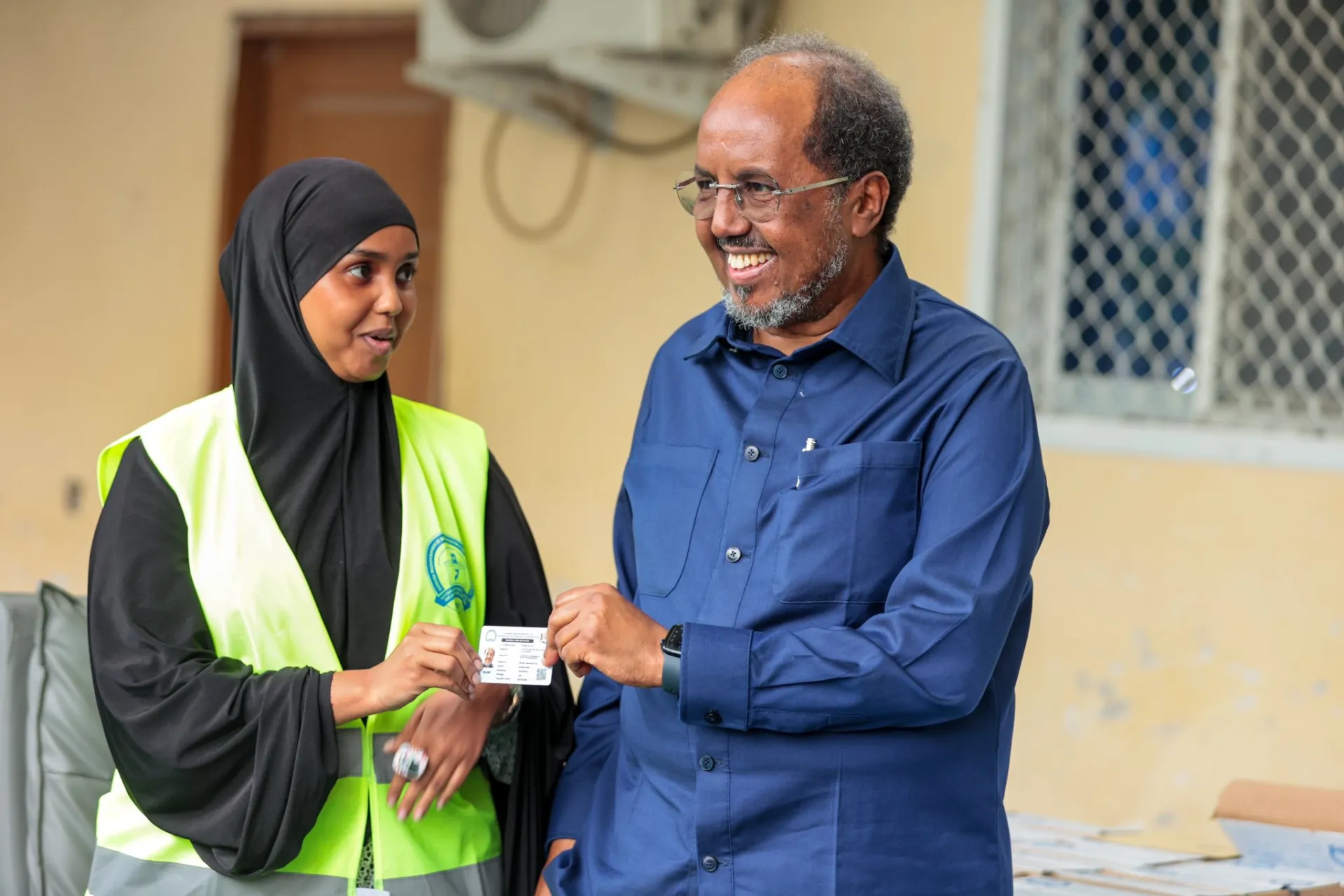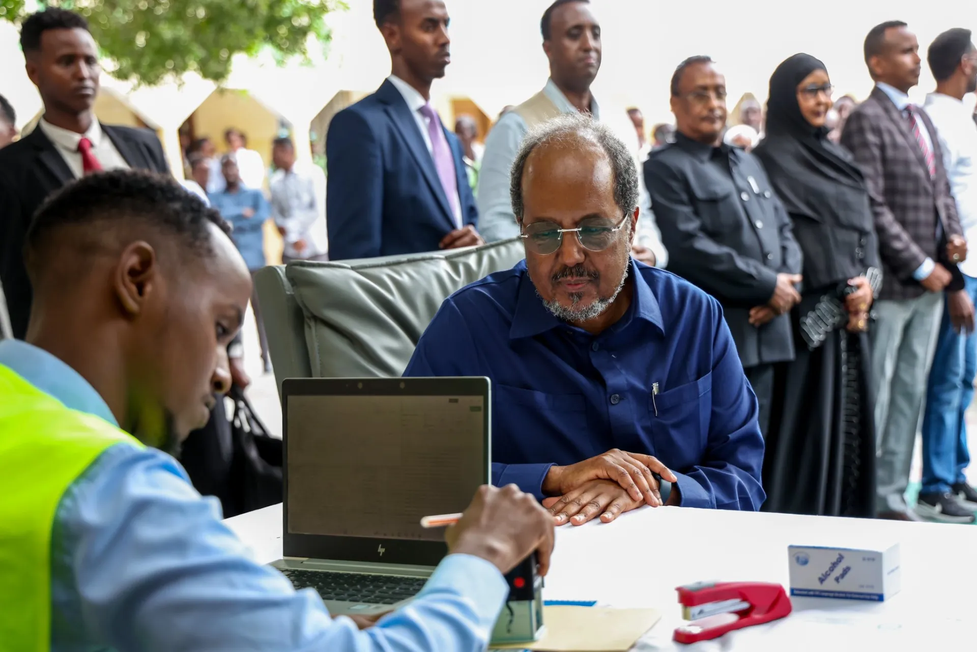 Madaxweynaha Somalia Xassan Shiikh Maxamuud ayaa manta kaarkiisa codeynta ka qaatay degmada Warta nabada oo uu markii hore iska diiwaan geliyey.
