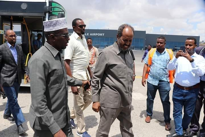 Waxaa goordhaw garoonka diyaaradaha Aadan Cadde ee magaalada Muqdisho ka duushay diyaarad gaar ah oo sida madaxweynayaashii hore ee Soomaaliya Xasan Sheekh Maxamuud iyo Sheekh Shariif Sheekh Axmed.