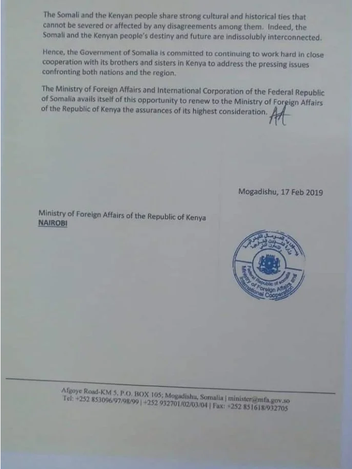 Dawladda Soomaaliya ayaa goor dhowayd jawaab ka bixisay tallaabadii ay shalay qaadday dawladda Kenya ee ay kula soo laabatay safiirkeeda Soomaaliya.