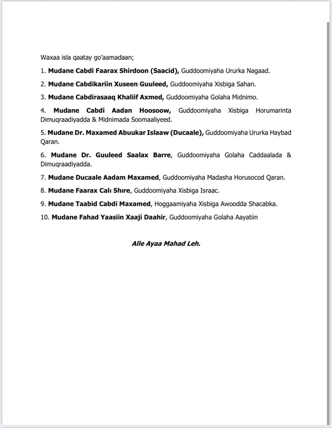 Warsaxafadeedka siyaasiyiintan ayaa lagu shaaciyay in musharaxa xisbiga ay ku bahoobeen ee madaxweynaha Soomaaliya u dhisayaan doorashada soo socota ee sanadka 2026 inuu yahay Raysal wasaarahii hore ee dalka Cabdi Faarax Shirdoon (Saacid).