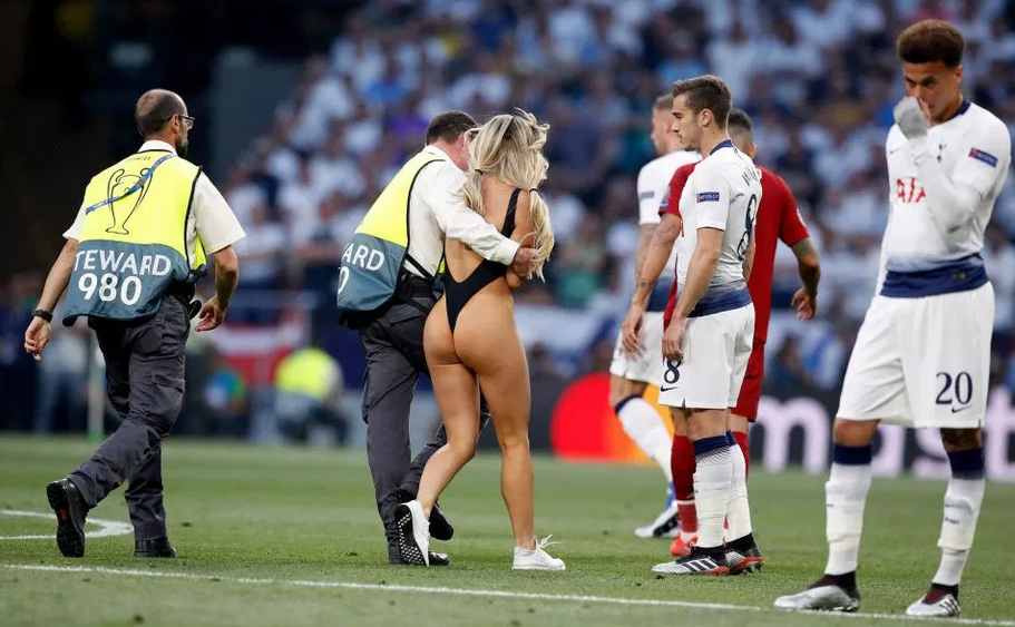 Kinsey Wolanski oo 22 sanno jir ah ayaa orod ku gashay garoonka Wanda Metropolitano iyadoo xiran dhar aan cowradeeda astureynin,, waxaana ayay xayaysiin u sameyneysay website-ka waxyaabaha xun faafiya oo uu leeyahay saaxiibkeed.